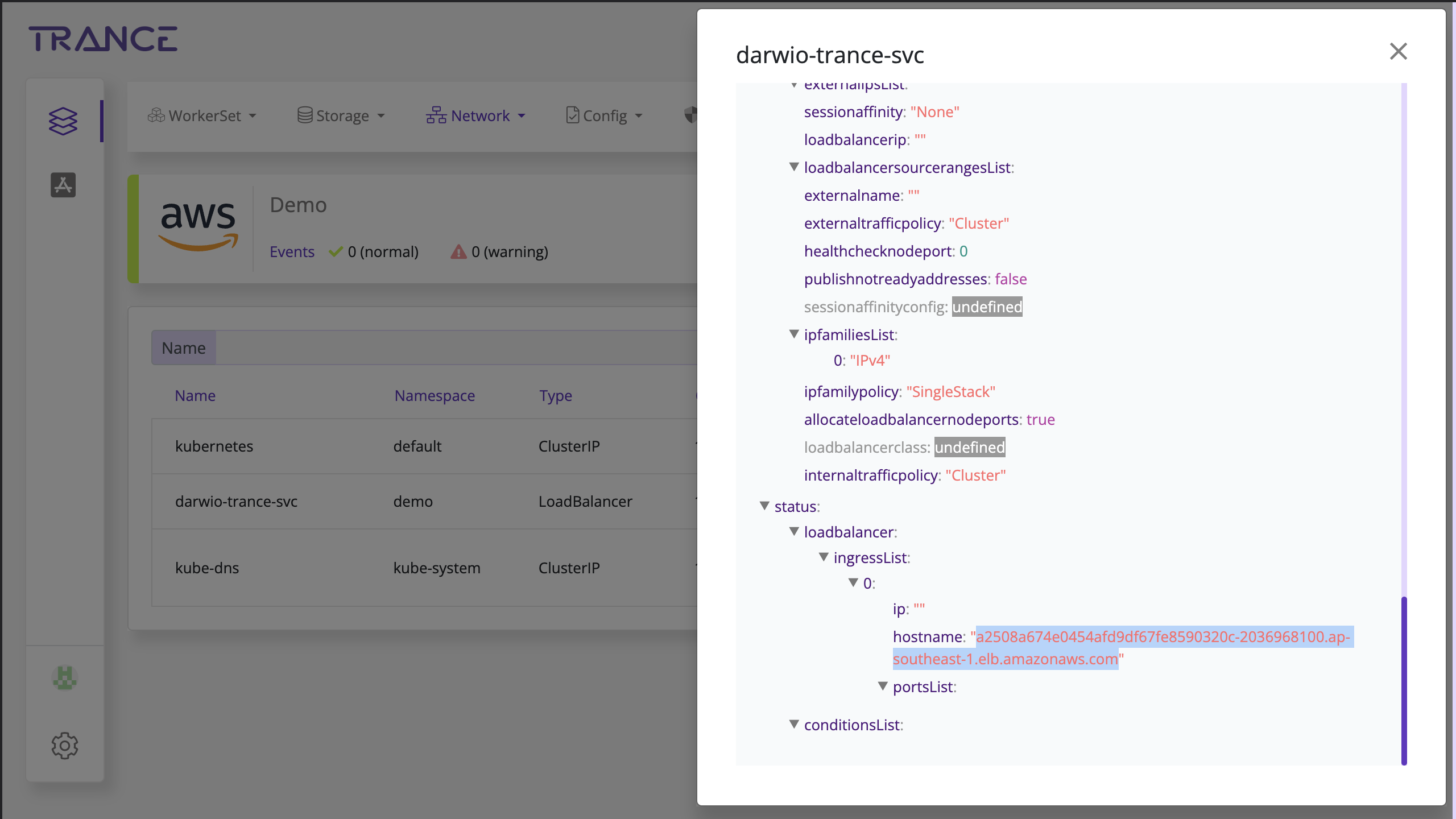 If you are exposing the application on ingress or as a loadbalancer service, check the loadbalancer endpoint, by clicking on the service name corresponding to the application. You can also click on any deployment and select expose as a service.
