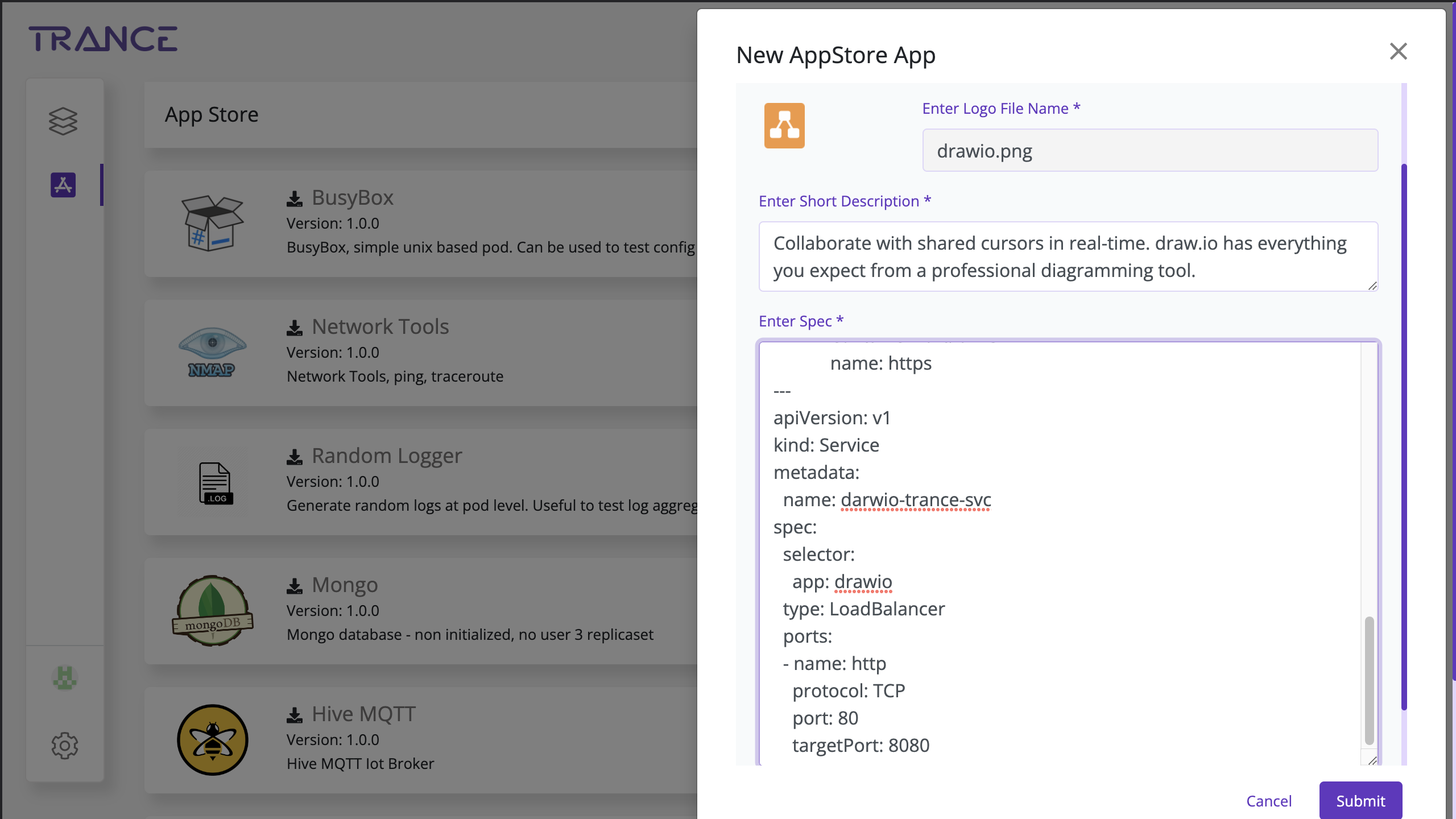 Once you have entered all the details, click on the “Submit” button to save the changes. After the application is validated, the application will be listed on the app store page. Make sure that the image is accessible as public or on your private registry as per your needs.