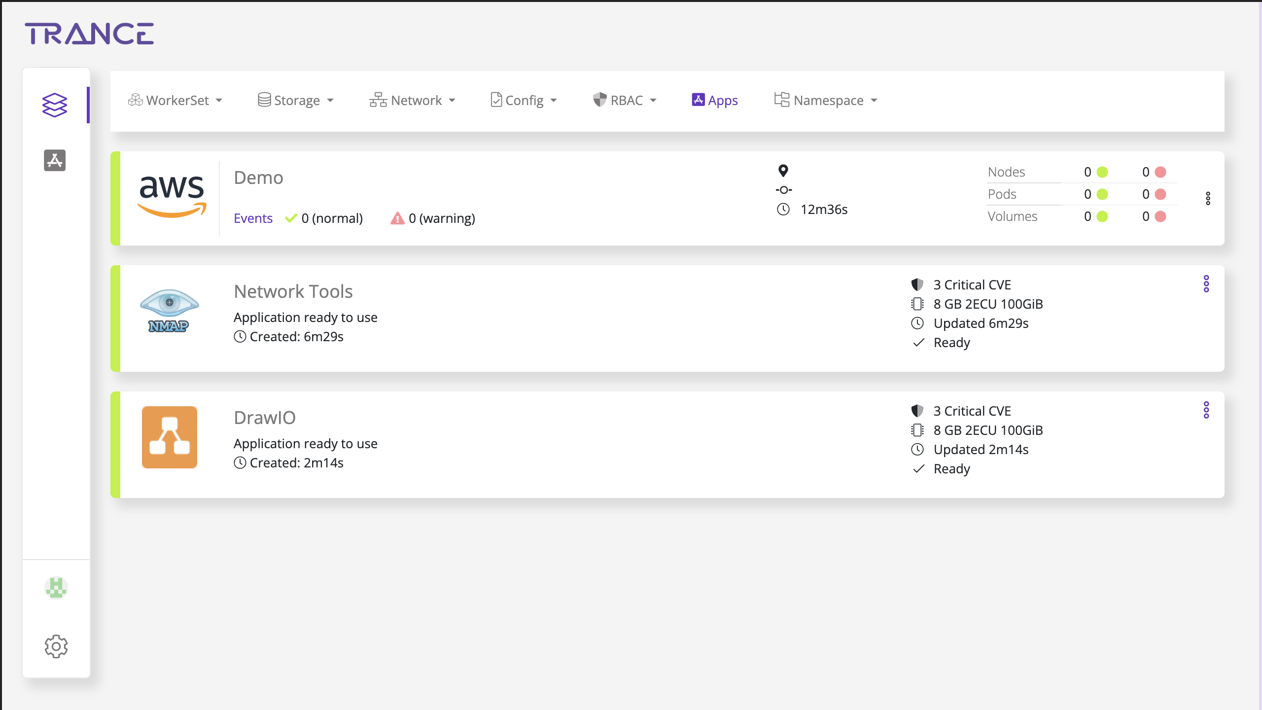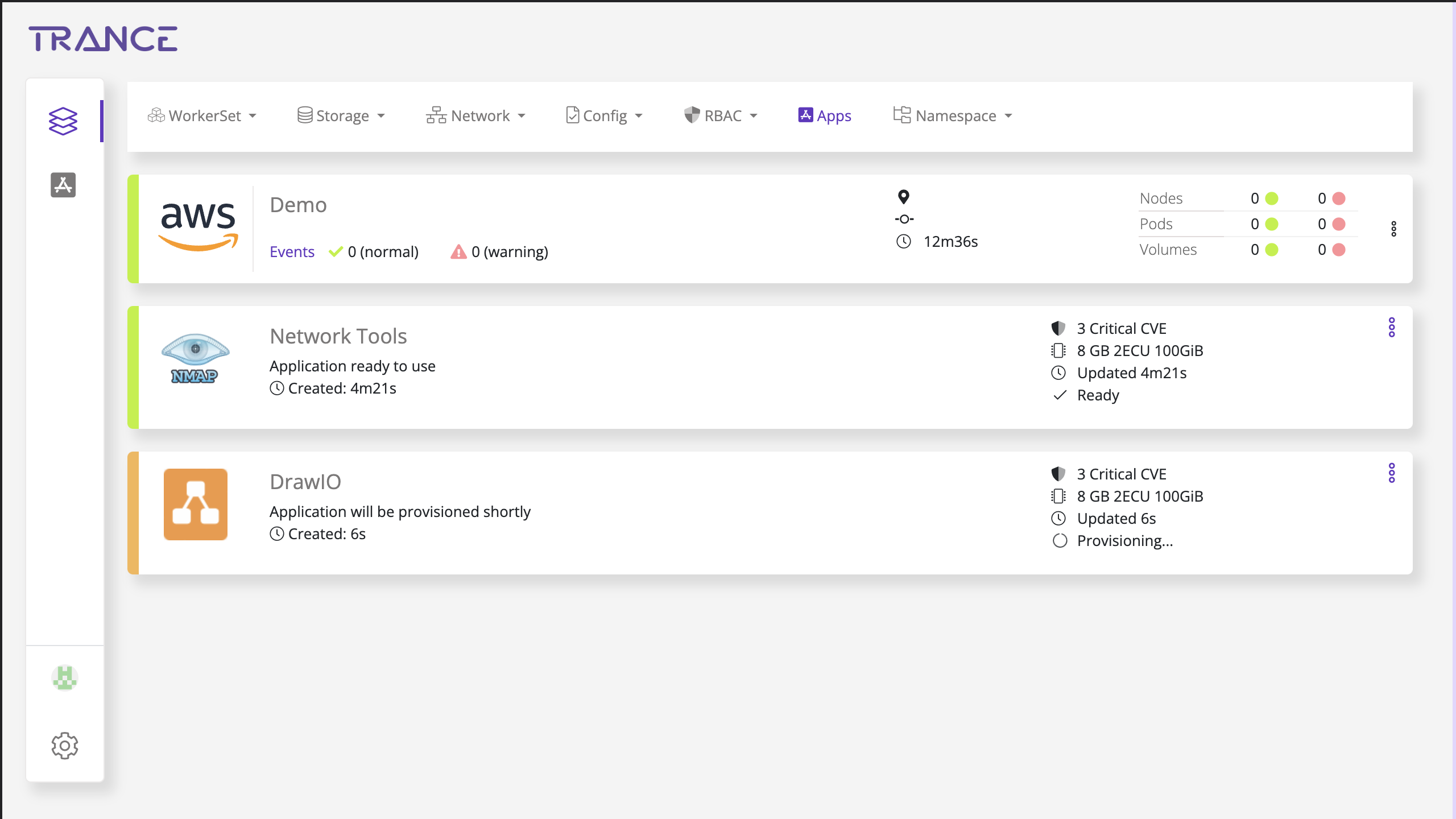 Once the provision button is clicked, the view changes to the App page/tab on the cluster detailed view. The application will be in Orange color, till the provisioning is complete. Any errors will be shown in the Apps screen.